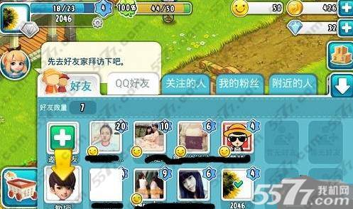 2、以QQ版全民农场为例子,全民农场里一共有4种方式可以加好友,比如QQ好友、我的偶像,我的粉丝以及附近的人。