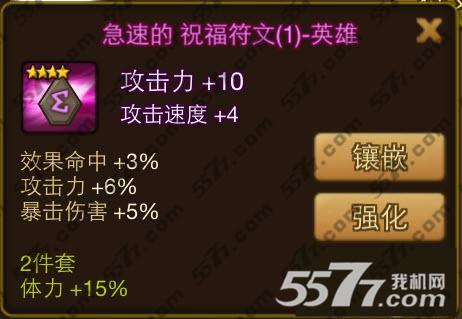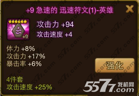 符文的选取也应该遵循同向原则。攻击套装的属性尽量选取高星的攻击属性。
