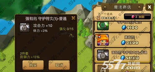 如上图的符文,即便是白色品质也卖价不菲,因为4星的出身就很高,作为守护符文附加的体力+3%也是防御型所需的,所以打算培养防御型魔灵的我就毫不犹豫的买下了。