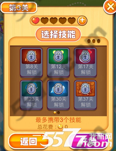 玩家总共可以携带哪个技能,需要到达一定的关卡才能进行解锁,如下图: