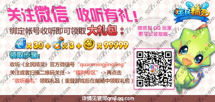 夏日暴爽来袭关注全民精灵微信领取超值礼包,绑定账号即可领取从天而降的大礼包福利,想要礼包多多那么各位玩家可千万别错过哦。