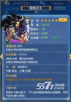在五星的级别中,属于中规中矩的类型,血量和攻击很均衡,攻击力比他哥哥金角大王要高,血量就逊色一些,毕竟还是以攻击为主的一个人物。