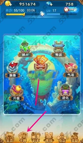 点击最下面的卡牌系统,然后点击强化卡牌,系统就会让玩家来选取卡牌,其实我们是在背包中进行选取,如果玩家想把比较好的卡牌,但是目前不想强化的卡牌放入仓库来保管,点击“存”就可以将背包中的卡牌放入仓库中。如果想把卡牌从仓库中取出来,那么就需要将点击“取”来将卡牌放入背包中去。