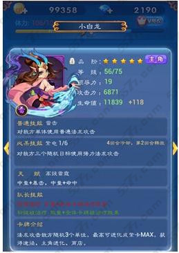 3、玩家在游戏中,吞噬相同必杀技能的卡牌有几率提升技能等级。技能等级一共有6级,可以升级5次。小白龙必杀技为紫电,能够对敌方三个随机目标使用强力法术攻击。通过吞噬具有紫电必杀技的怪物卡牌,将小白龙紫电等级提升到6级就会转化成高级紫电。