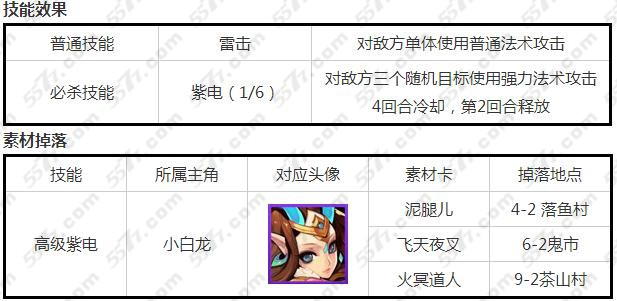 欢乐西游高级紫电是小白龙必杀技,升级高级紫电伤害将会增加,那么小白龙高级紫电技能怎么升级呢?下面小编来给玩家朋友分享下欢乐西游高级紫电技能升级材料掉落关卡,希望能帮助到玩家朋友。