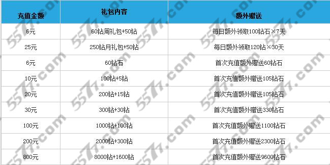 此外,在活动期间,充值其他金额也会获得不同的钻石反馈,具体的反馈数量参考下面的表格。