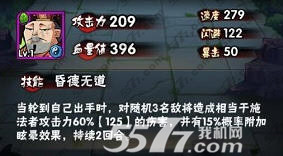 【昏德无道】对随机3名敌将造成相当于施法者攻击力60%的伤害,并有15%概率附加眩晕效果,持续2回合。