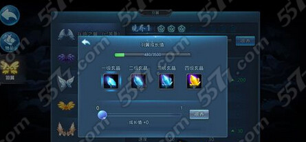 羽翼同我们的元魂(宠物)一样,可以通过喂养玄晶来提升它的境界(等级)。当羽翼成长值满格后,便会提升一星。羽翼等级提升也将为我们的人物提供属性加成。
