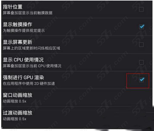 玩家需要在手机设置中的“开发商”选项里,将【强制进行GPU渲染】这项勾选上就OK了。