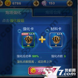 1、炮塔强化需要摆放强化卡与材料卡,同种类的炮塔才能进行强化。