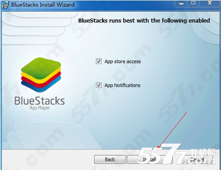 2.根据需要,选择是否从网络上下载新的安卓应用,和应用通报后,单击“Install”。
