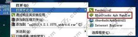 4.安装完后,右键点击游戏apk文件,选择打开方式选择“bluestacks”。
