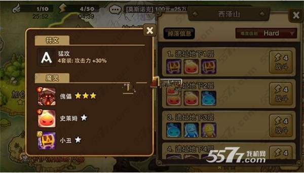 在第四关就不多该去打地下城的巨人刷些好用的符文 , 刷巨人第二关对新手来说效益最高 , 有机会刷到3~5星卷轴 , 1~3星的橙符文及紫符文 , 顺便练小支的2星来升成3星做材料 , 只要2支主要魔灵就可以拖3支一起练 , 虽然经验值很少 , 或你要打之后的副本很需要好符文 , 基本上这裡的符文强化到6就好了 , 不是4星以上的强化太高是浪费 , 到这裡你已经普通全破了 , 可喜可贺。