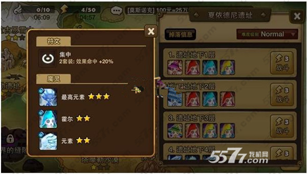 掉落魔灵:三星最高元素、二星霍尔、二星元素、一星下级元素