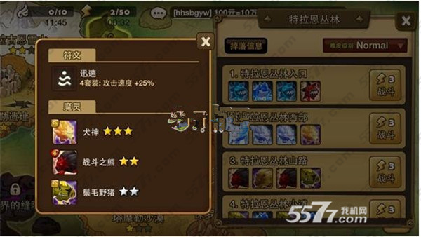 掉落魔灵:三星犬神、二星藤刺地狱花、二星鬓毛野猪、一星蘑菇怪、一星丛林守卫