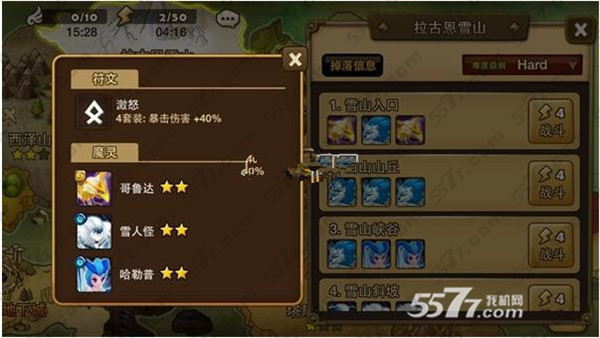 掉落魔灵:三星战斗之熊、二星哥鲁达、二星雪人怪、二星哈勒普