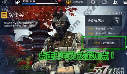 每个士兵都有6种技能可以升级,升级需要的技能点都在技能简介下方。玩家先选择技能,查看技能点是否足够,如果技能点足够玩家升级,则会显示为橙黄色哦,玩家点击一下技能点就能为该技能升一级了。
