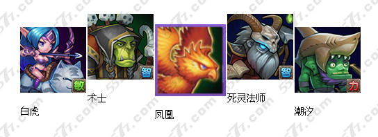 阵容一:白虎+术士+凤凰+死灵法师+潮汐