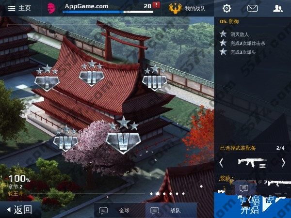首先要说明一点是,与《愤怒的小鸟》不同,《现代战争5》中追求三星与追求完美过关是两个层面的概念。完美过关就是一次过关将三星拿齐,虽然对于高手来说,大多数关卡也不在话下,但实话实说某些关卡一次三星过还是小有困难。好在游戏的设定是三颗星星可以分开拿,如果你只是以三星为目标,一次拿一到两颗,下次再针对剩下的一颗布置战术就可以了。按照关卡顺序,我们将选出相应的过关要求加以评析,当然如果你想要完美,就只能自己苦修枪法了。