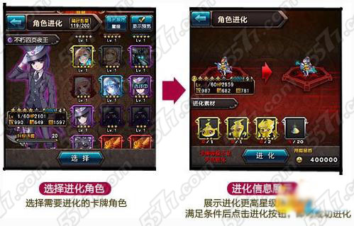 血族说起来养成的部分也做得不错,每张卡牌都是一个角色,角色有不同的星级,星级越高品质自然也越好,那么提高星级的办法自然就是进化了。 依次点击“角色”-->“角色进化”-->选择需要进化的角色-->开始进化