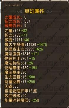 雷霆之怒:力量10、敏捷10、智力10、物理攻击力125、生命回复500