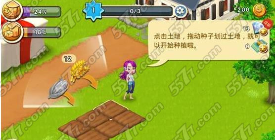 种植和收割农作物的操作很简单。种植农作物:玩家只需点击空闲的田地,然后左上角会出现玩家现有的种子,点击想种植的种子撒到田地中即可。收获农作物:点击已经成熟的农作物,左上角即出现一把镰刀,然后点击选中镰刀拖动到成熟农作物上,左右横扫至所有田地收割完成即可。