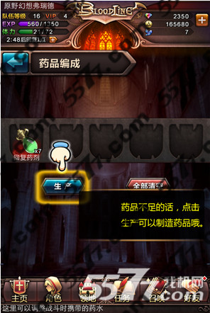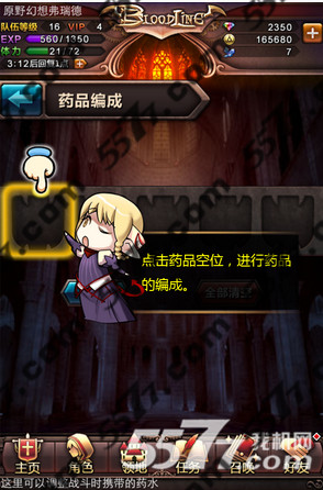 1、点击战斗准备界面下方的药品空位,进行药品编成。