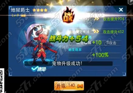 2、没有满级的宠物下面显示升级选项,玩家需要花费狗娘来就行升级宠物。
