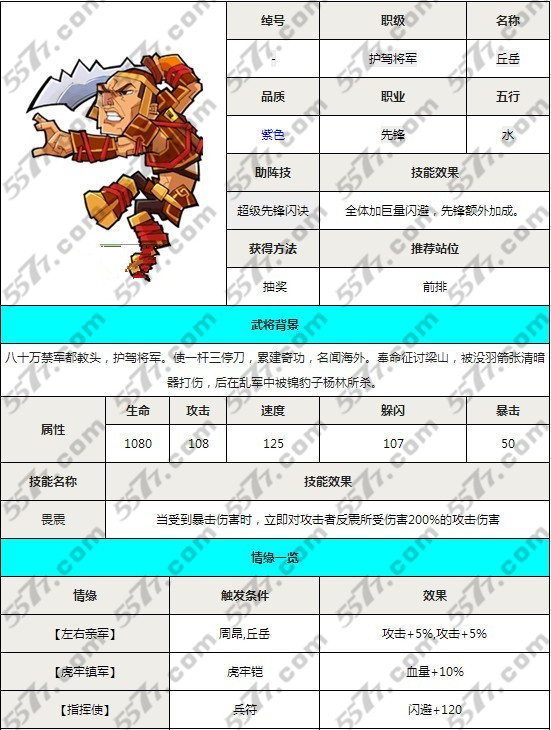 全民水浒的各位玩家们,护驾将军丘岳是一个怎么样的卡牌?他在紫色卡牌中的地位如何?今天小编就来给大家详细的分析一下!希望大家能够喜欢哦!