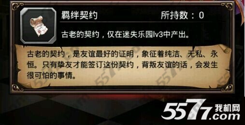 羁绊契约仅在迷失乐园LV3中产出,是六十级以上装备升级需要的高级材料之一。如果玩家的等级还没有接近六十级的话,小编建议玩家就暂时不要购买,因为也用不到。