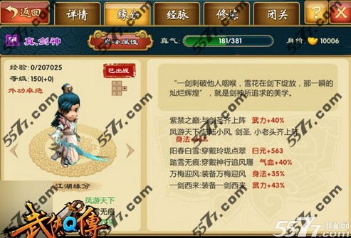 武侠Q传游戏新版本的更新,游戏加入了新的甲级弟子——真.剑神!那么该弟子的成长属性和缘分怎么样呢?弟子好不好?相信很多玩家不了解,那么小编为你详细解析该弟子!
