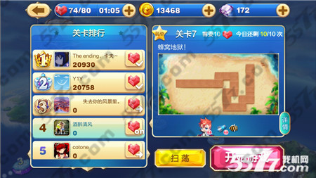 【扫荡】:如果你之前闯过本关,而且是三星通关,那么只要支付等量的爱心就可以面去闯关,直接拿奖励。
