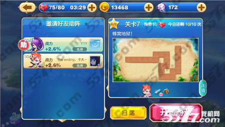 了解完关卡信息,做好了充足的准备后,就可以点击“开始游戏”了。就会来到一个新界面,这也是游戏的一个特色:好友助阵。在这里你可以选择召唤你的小伙伴到关卡中帮你(一次只能召唤一个噢!)