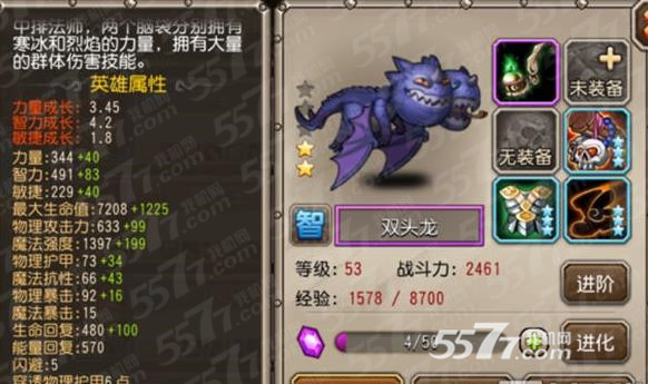 单从双头龙三围来看,实在是看不出有什么亮点,但是长期的实践告诉我们,三围都是骗人的。当然,满级后的三围会不会差很远就有待考证了。2星的双头龙智力成长4.2对比起2星火女的4.7确实是有点差距,但比起3星才5智力成长的女王却是毫无压力。