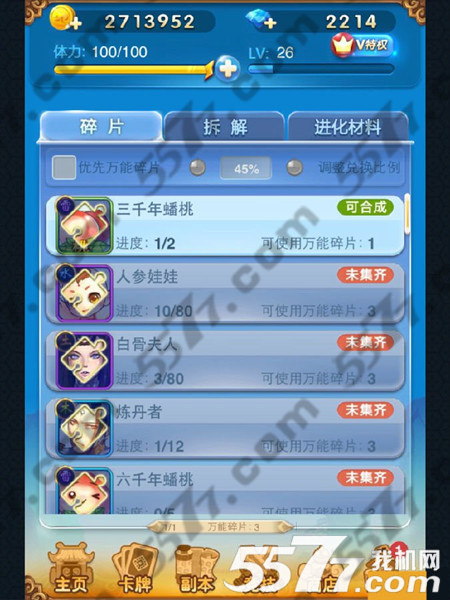 玩家在游戏中集齐一定数量的碎片,就可以合成对应的卡牌。