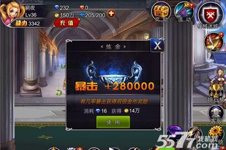 英雄之剑系统送的蓝钻还算是挺多的,如果后期金币不足的话,不妨合理使用以下炼金系统。