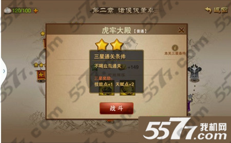 1、三星通关条件。游戏中战役里每一个关卡都会有通关条件,玩家千万要注意三星通关条件。关卡一般都是不喝血瓶通关,血量不低于多少等等。