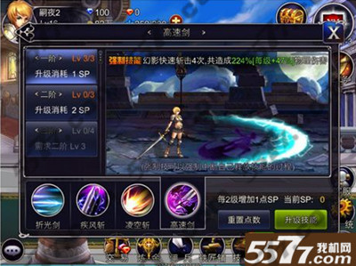 4、技能高速剑,大剑士快速向后滑动一步,分出一个分身快速斩击4次,共造成224%[每级+47%]物理伤害。这个技能可以中断自己释放技能的过程强制释放,可以接任何技能,可以预计这个技能在PK时很厉害,手速快一些的玩家用这个技能能活活玩死敌人。