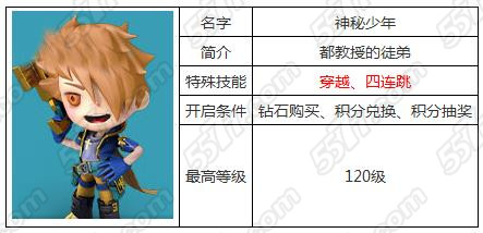 神秘少年拥有穿越和四连跳技能,满级属性是120级,如果上线,将是第二个有四连跳技能的人物。