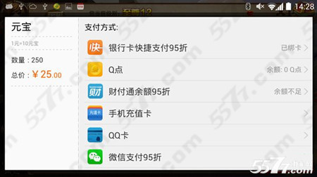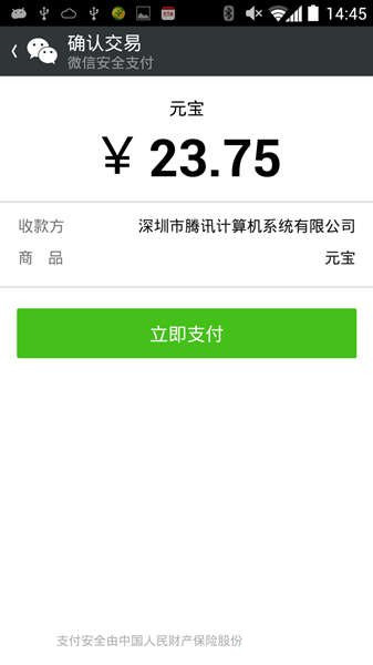 在游戏过程中,只要点击元宝前面的加号按钮,就可以打开充值界面。在这里,请您选择想充值的数额,猛击它!!!注意:如果您的手机上已安装腾讯安全支付插件,系统会自动进入下一步;如果没有,就请您按系统提示操作,先安装哦。