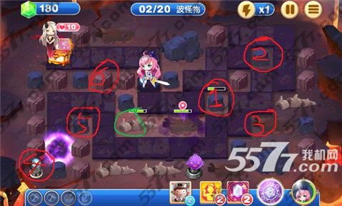 2. 前几波如果没有保险措施,可以在怪物到达倒数第二图是英雄蓄力攻击可全歼敌人(区域可能还可以扩大,个人只打一次,记不清啦!)