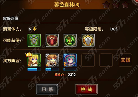 3、关卡需要结合自己的战斗力来就行选择,这样才能顺利的通关,在关卡中我们可以获得相应的英雄进阶需要用到的材料,所以想要升级英雄那就需要多刷副本哦。