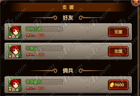 4、选择好友支援的时候,建议玩家朋友选择战斗力强的好友,这样可以确保在通关的时候战斗力加强可以一次顺利的通关获得3星关卡奖励。