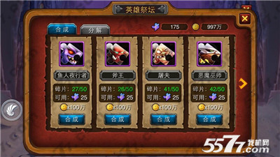 不需要的装备不要合成,因为材料多了很多都可以合成,每个卡牌只能5个装备。