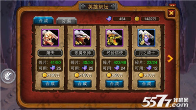 五个紫卡装备好的情况下可以去挑战下。战胜后可以得到金币信使或者金币信使碎片。