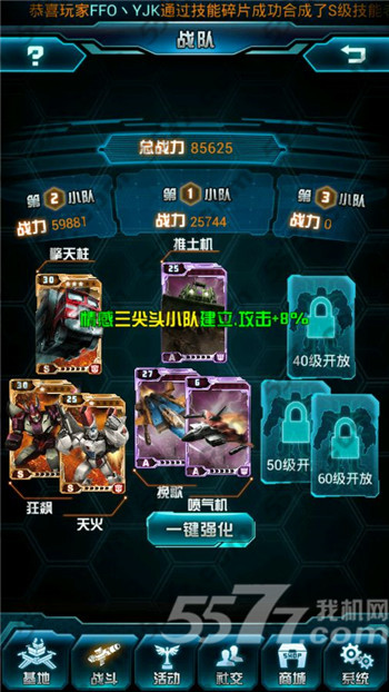 首先普通玩家前期能获得的组合金刚只有大力神,而用过的朋友相信都能体会,大力神虽然能加一两万的战力,但实际作战效果不大,血虽然高,但防御太低,速度也低,很多时候捱不到出手就挂了,即使能出手,算上技能也秒不到人,这意味着一个小队已经报废了。同时又非常吃经验、装备和出战格子(组合金刚出战获得经验是小于五人份的),还得不断地组合拆开放基地吃经验,非常麻烦,因此小编不推荐大家使用。