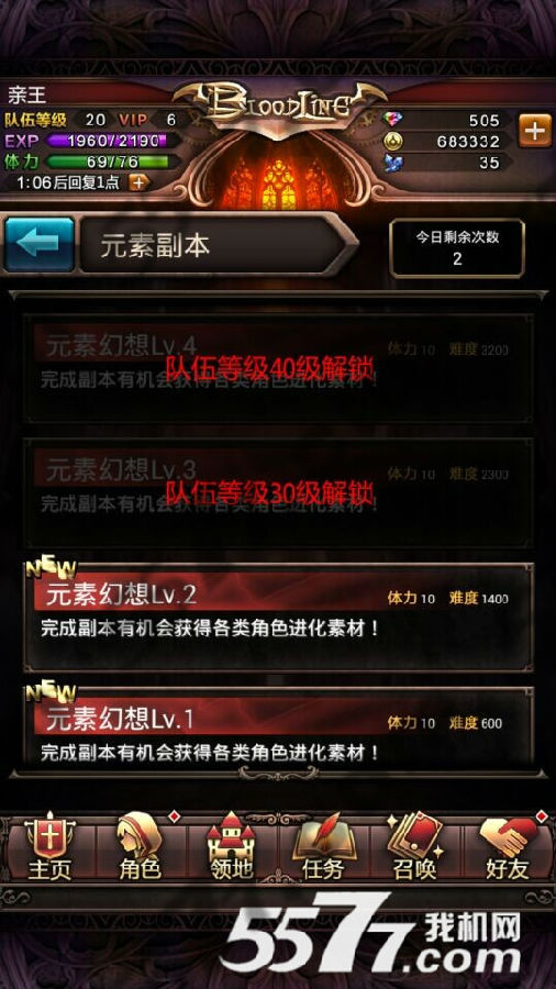 元素幻想每天可闯2次,每次消耗10点体力,难度被系统定位640,难度和迷失乐园要一样,需要玩家拥有不是太差的卡牌都能过,太差的卡牌需要搭配药剂也能过,完成血族元素幻想活动副本,可获得各类角色进化素材。