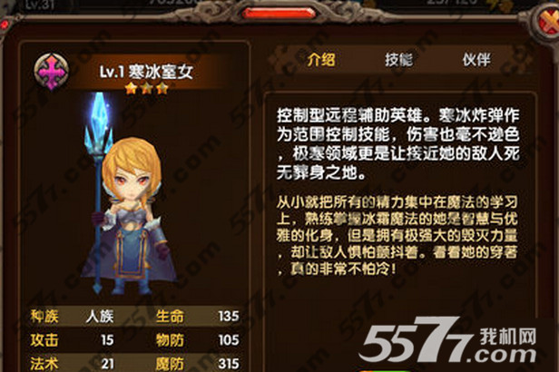 寒冰室女的角色定位为辅助型,但她的控制能力也不比烈焰魔女来的差,两人的交替发挥将使对手一刻也不能逃离我们的手掌心!