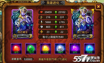紫卡+1,85级进化+2,进化需要物品如下:(金币160W、月之骑士紫卡两张)