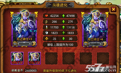 紫卡+3,95级进化+4,进化需要物品如下:(金币240W、紫色月之骑士+ 两张)